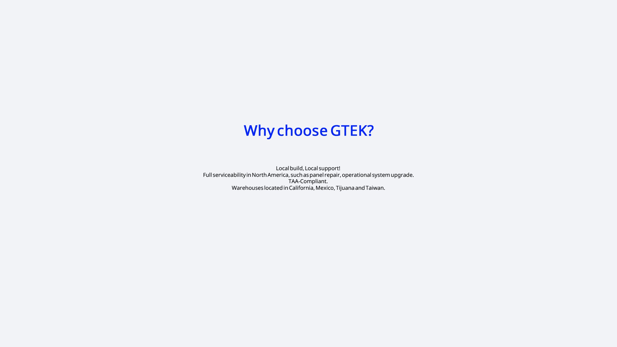 Headquartered in Southern California with a 40,000 sq. ft. warehouse, our operation is manned by a dedicated team of 20 professionals. GTek also operates three strategically located warehouses in Tijuana, and Mexico, staffed by over 200 skilled workers proficient in light assembly and ensuring TAA compliance when required.