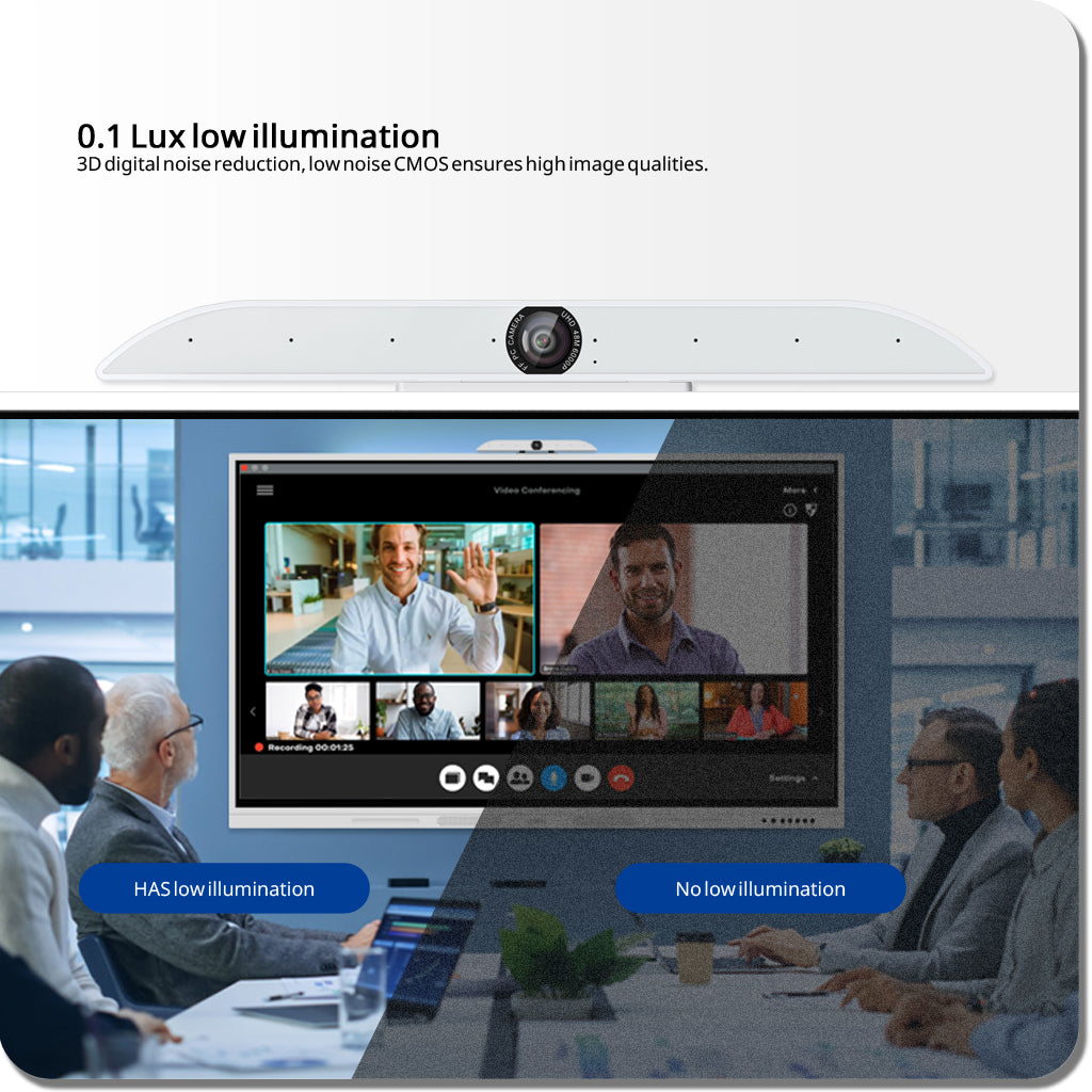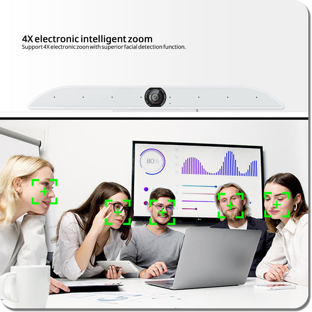 Auto Framing function: with advanced human tracking detection function, intelligent zooming function according to the number of figures in the meeting venue with figures centered.