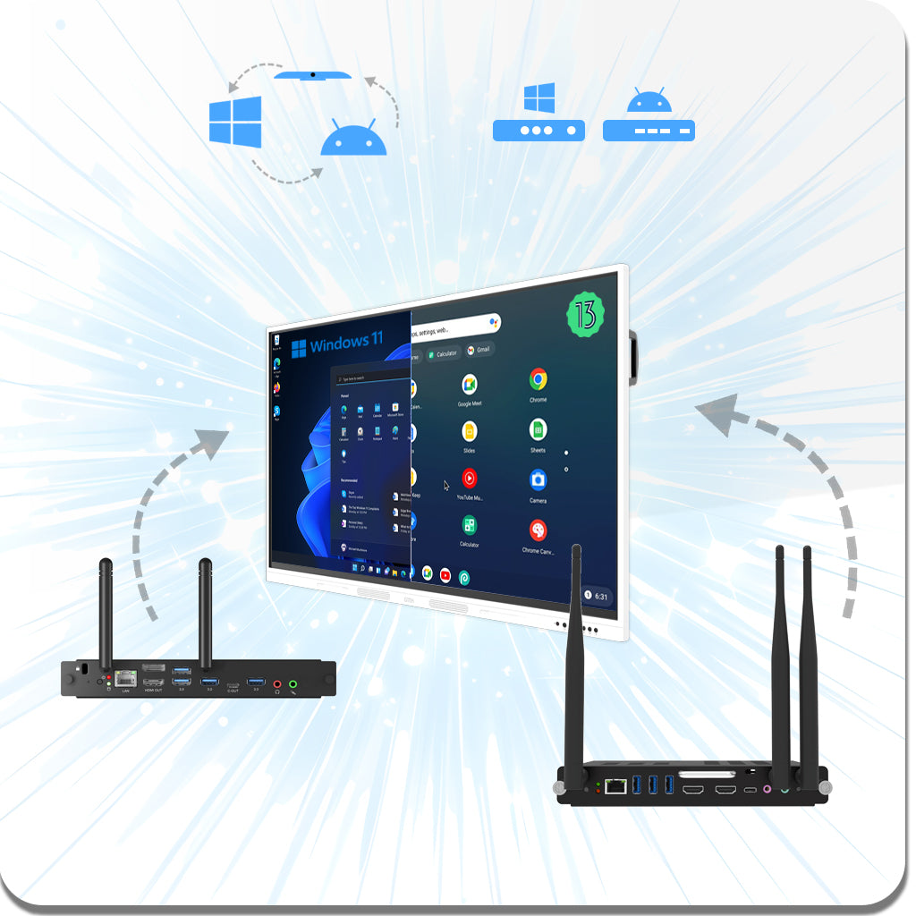 Unlike traditional electronic whiteboards with fixed components, GTEK’s modular design sets it apart. The screen, OPS modules (Android or Windows), and accessories like the AI Camera are separate, pluggable parts. If a component fails or becomes outdated, you can replace or upgrade just that part—no need to buy a whole new system. This saves time, money, and reduces electronic waste, making GTEK a sustainable choice.