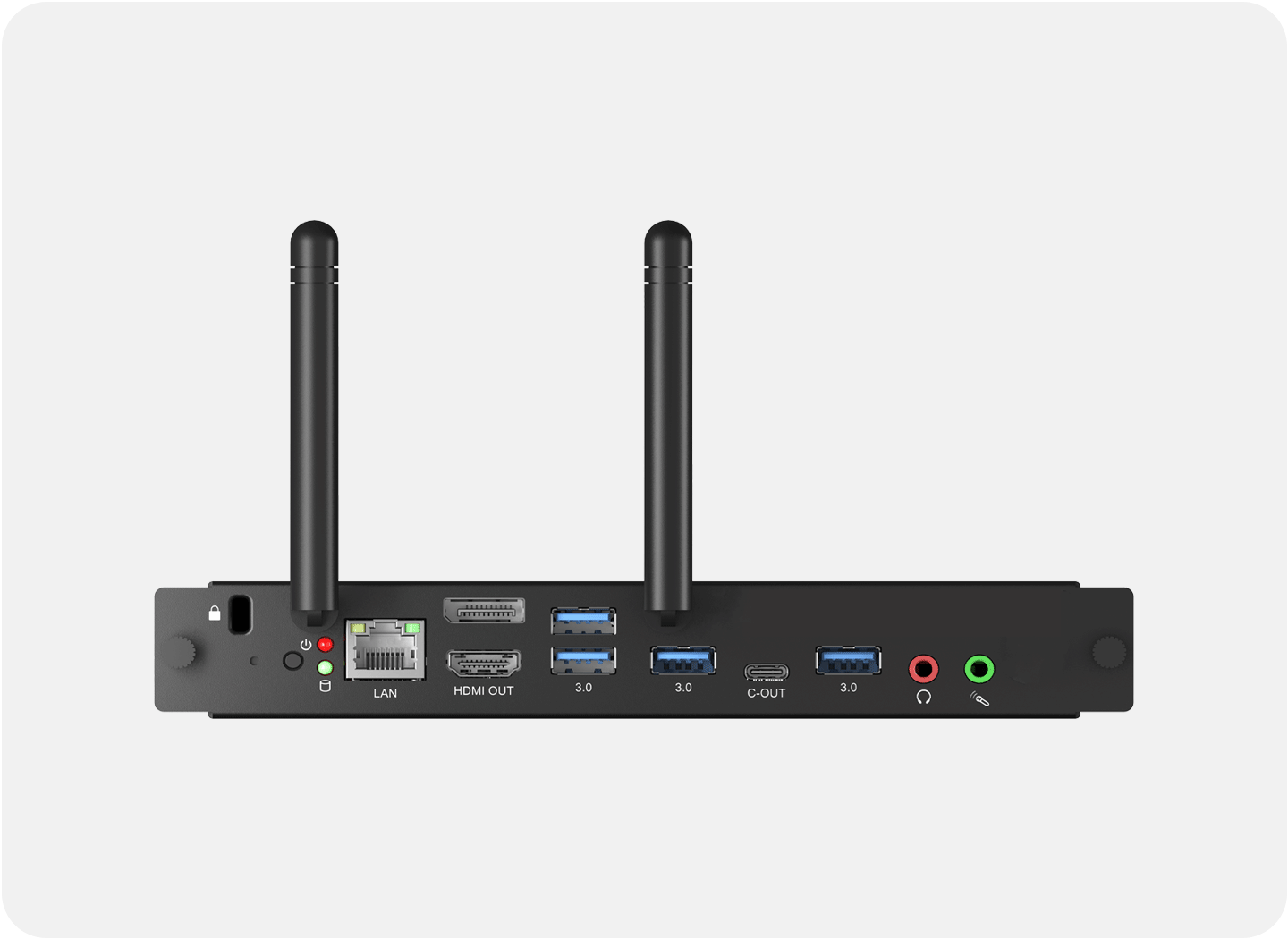 - Dual Interchangeable OPS Support: Accommodates two pluggable OPS modules, letting you switch between systems (Windows, Android) or run different environments for maximum flexibility. (This version comes with Windows OPS only).